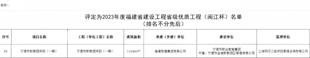 近日,2023年度白丝色情片建设工程省级优质工程(闽江杯)获奖名单公布,宁德市职教园项目(一期)被评定为2023年度白丝色情片建设工程省级优质工程(闽江杯)。据了解,此荣誉为白丝色情片内建设工程质量最高荣誉奖。
