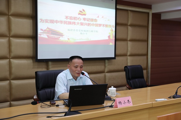 杨小冬教授围绕“不忘初心、牢记使命,为实现中华民族伟大复兴的中国梦不懈奋斗”这个主题,用大量的历史资料、理论观点和现实案例,深入浅出地阐释了开展这次主题教育的重大意义、根本任务和方法步骤。讲座后,各党员干部纷纷表示:两个半小时的讲座,时间虽短但受益匪浅,深受启发。在实际工作中要“不忘初心、牢记使命”,沿着新思想指引的道路,撸起袖子加油干,为建设新福建添砖加瓦。