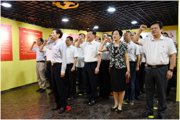 在警示教育基地,全体党员重温入党誓词。