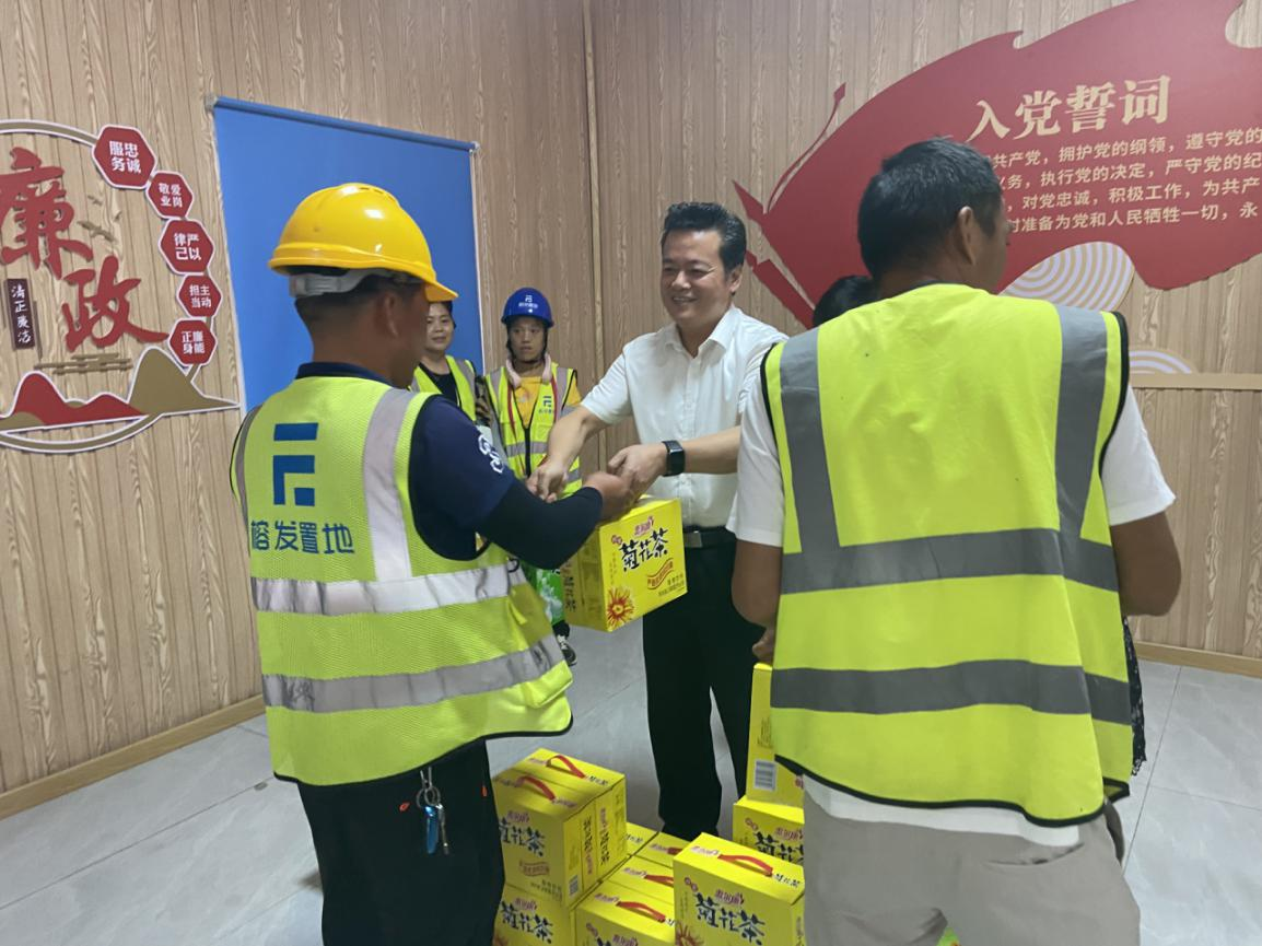 向榕发揽湖郡项目部一线工人发放防暑降温饮料