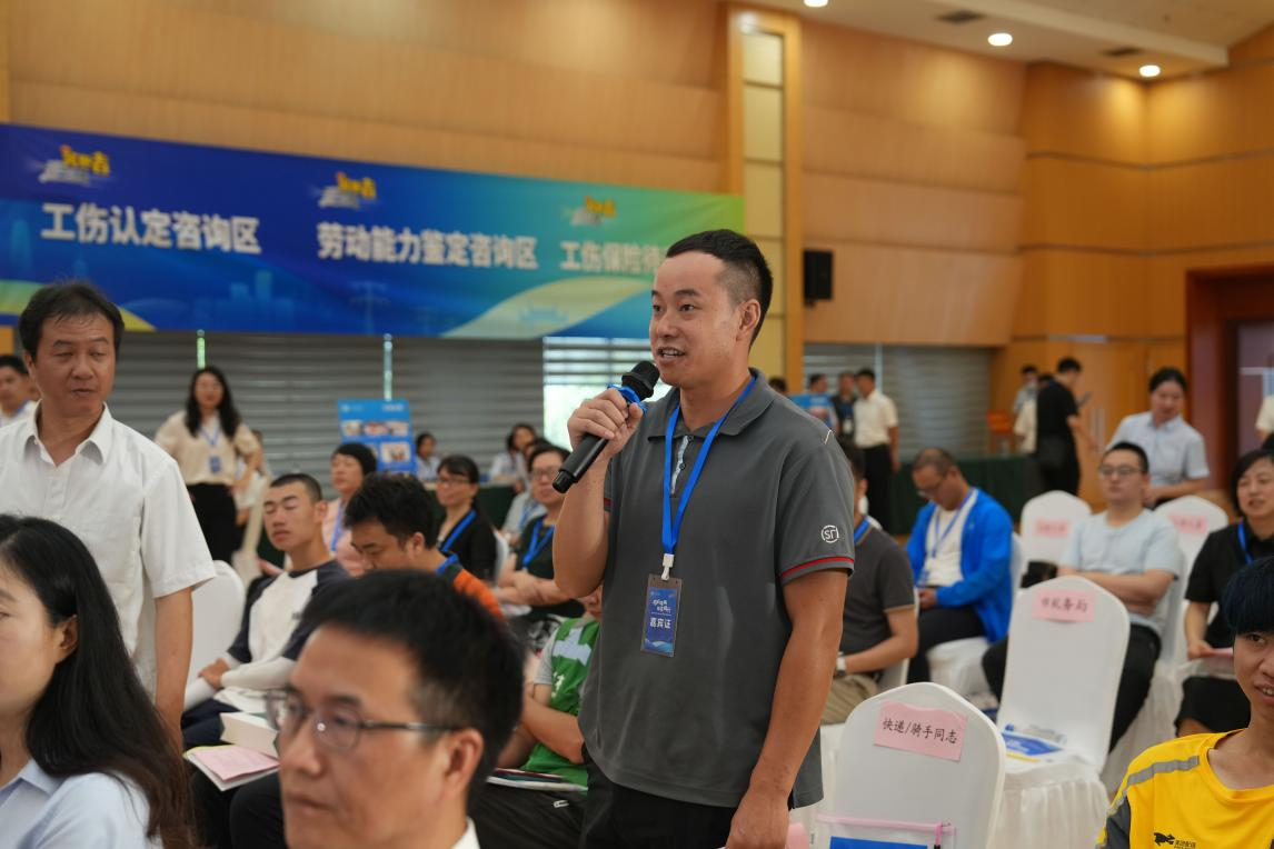 活动现场先后开展了有奖问答、面对面宣讲、工伤预防案例分享等形式多样的政策宣传活动,展示了《工伤保险条例》实施20周年的成就。同时,工伤认定、劳动能力鉴定、社保待遇等方面业务骨干为参加活动人员发放工伤保险政策宣传材料,提供政策咨询和经办服务指导,让企业和职工了解政策、知晓权益,为企业持续健康发展夯实安全根基,为职工生命健康筑牢安全底线。