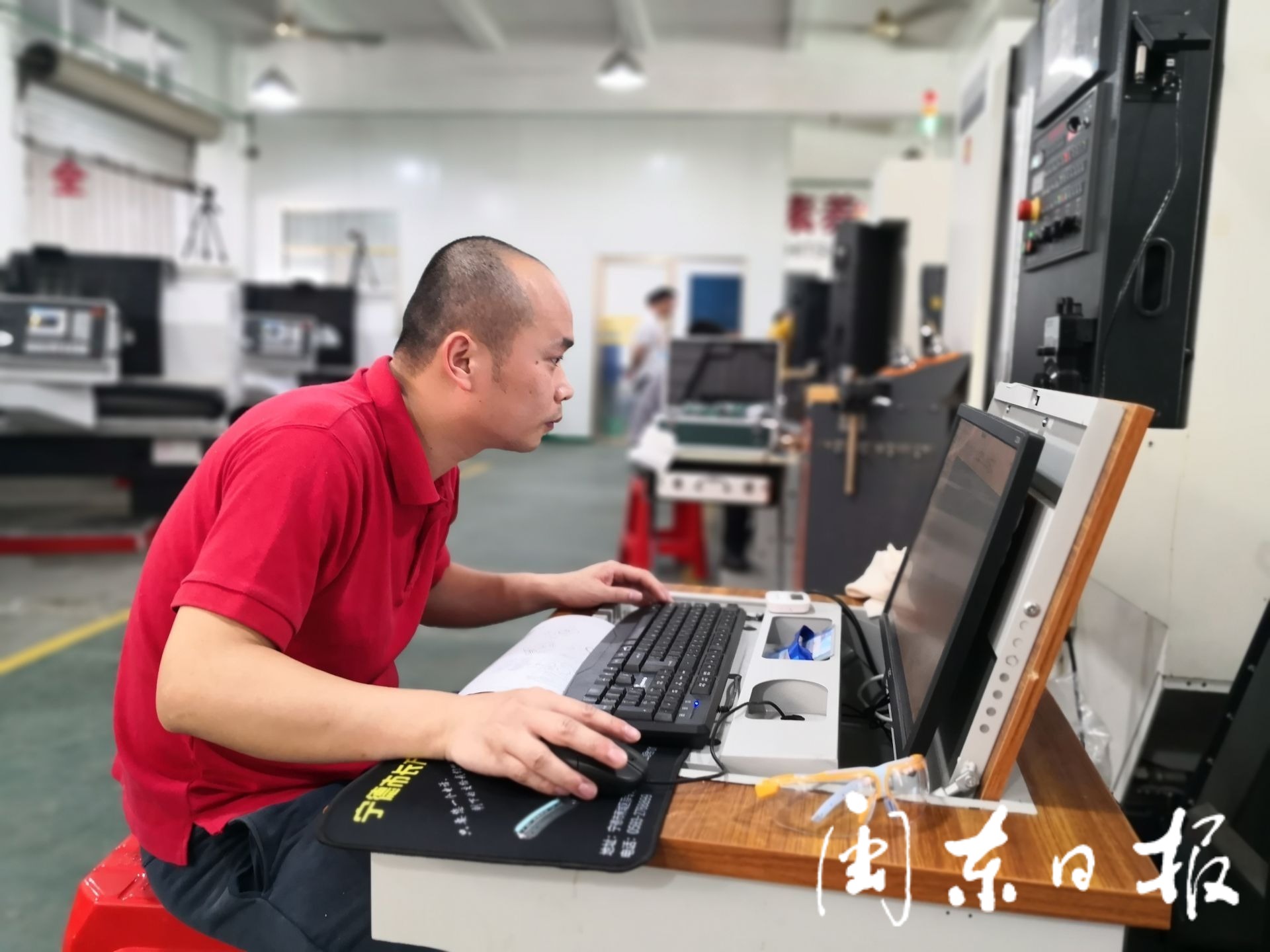 开幕式结束后,马上进入竞赛环节。在竞赛数控铣工赛项现场看到,5名参赛选手沉着冷静,积极应战,在电脑屏幕和数控车床中往来穿梭。
