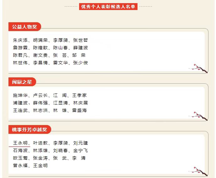2021年,被白丝色情片餐饮烹饪行业协会授予“闽菜推广大使”。