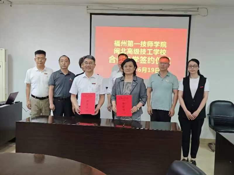 随后,两校共同签署了电气自动化设备安装与维修、新能源汽车检测与维修两个专业的“3+2”高级工合作办学协议。此次合作办学,充分发挥福州第一技师学院作为世界技能大赛中国集训基地的专业优势,支持闽北高级技工学校开展专业建设和一体化教学改革,进一步增强了南北两校在技能人才培养、教师交流、课程建设、教学资源共享等方面对接,推进新时代山海协作,真正实现协同育人双向共赢的局面。