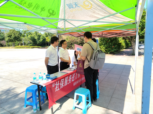 “社会保险由养老保险、医疗保险、失业保险、工伤保险、生育保险等五个险种组成,它与我们的工作生活息息相关。”在明德楼一楼会场,工作人员为农林大学的师生们宣讲了参加社会保险的重要性,讲解了企业职工养老保险、机关事业单位养老保险及工伤保险有关政策,回应了师生关切的有关养老保险热点问题,同时普及了《社会保险经办条例》相关内容,通俗易懂的宣讲方式赢得了师生们阵阵掌声。