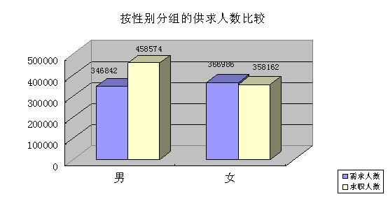 从性别上看,男、女求职人数各占总量的56.15%和43.85%,男性劳动力供给仍然高于女性,女性求职人数与去年同期基本持平。
