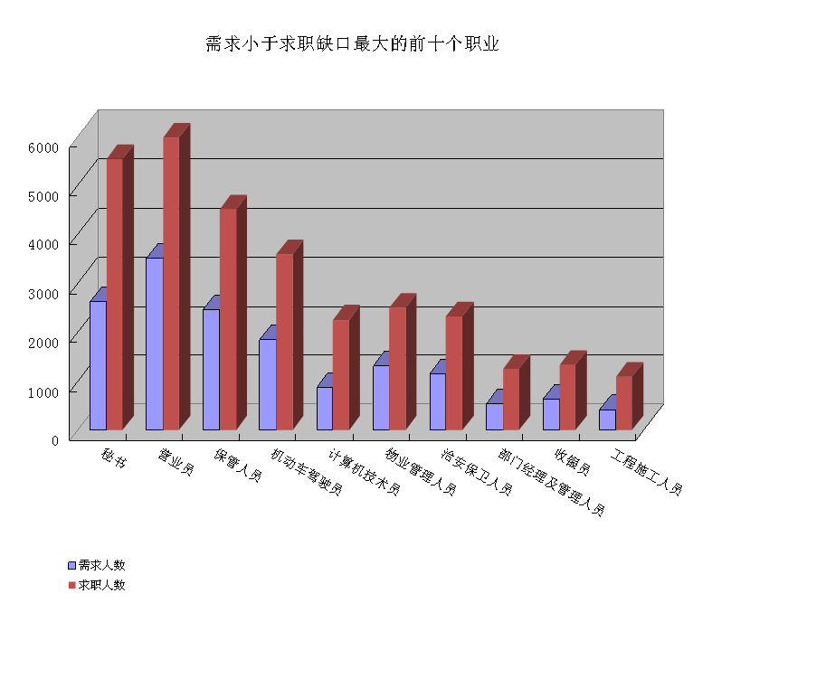 | 职 业 | 职业代码 | 劳动力供求人数比较 | |||