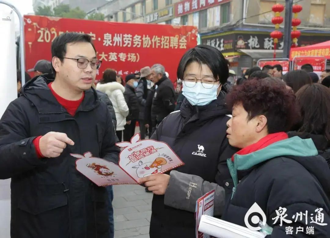 1月14日至18日,泉州市人社局联合市总工会,带领泉州开发区、泉州台商投资区和洛江区三个县级人社部门,奔赴四川省遂宁市、广安市等地开展劳务协作、专场招聘、“千里送暖”慰问返乡职工等活动。活动期间,还举办4场劳务协作对接专场招聘会,并组织15家泉州重点企业,为当地提供2000多个优质岗位,用“真金白银”促进招工引才。