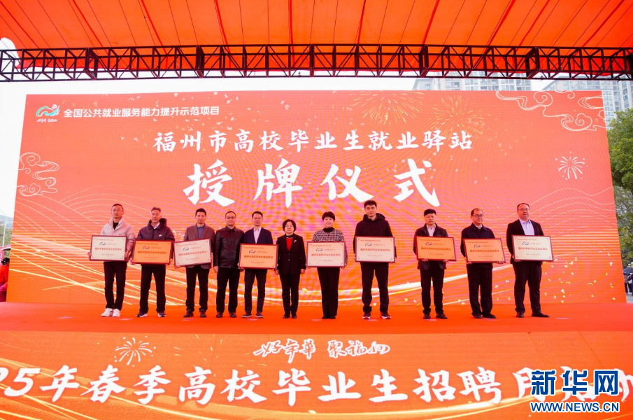 启动仪式上,主办方为获得“福州市高校毕业生就业驿站”的单位授牌。新华网 蒋巧玲 摄