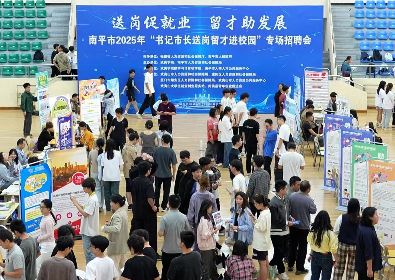 4月18日,南平市2025年“书记市长送岗留才进校园”活动在武夷学院举行,南平市政府副市长杨新强出席,为2025届毕业生送政策、送岗位、送服务。
