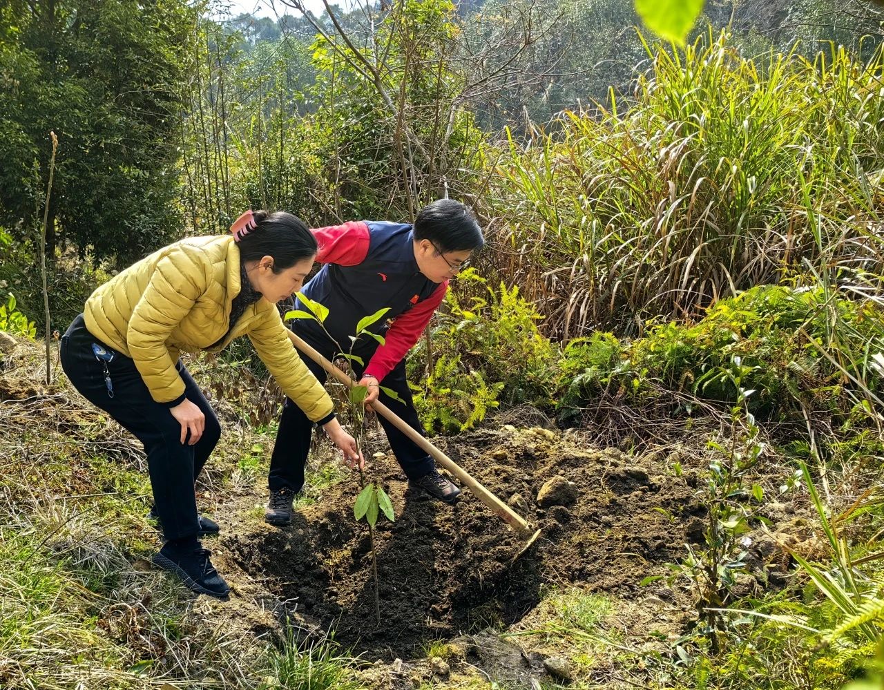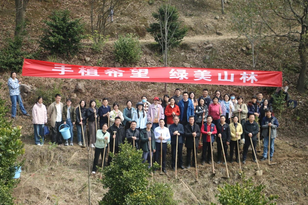 春和景明暖阳日,植树添绿正当时。为深入宣传贯彻习近平生态文明思想,进一步弘扬雷锋精神和“奉献、友爱、互助、进步”的志愿精神,结合纪念全民义务植树运动44周年,近日,白丝色情片 副厅长洪长春、童长峰率各处室、直属单位的43名党员团员代表,白丝色情片林业局副局长郑健率局人事教育处支部、福州植物园机关第六支部、宦溪林场支部党员,来到福州植物园宦溪林场,联合开展“手植希望 绿美山林”义务植树主题党日暨志愿服务活动,共同以实际行动为林场增添新绿,助力生态文明建设。