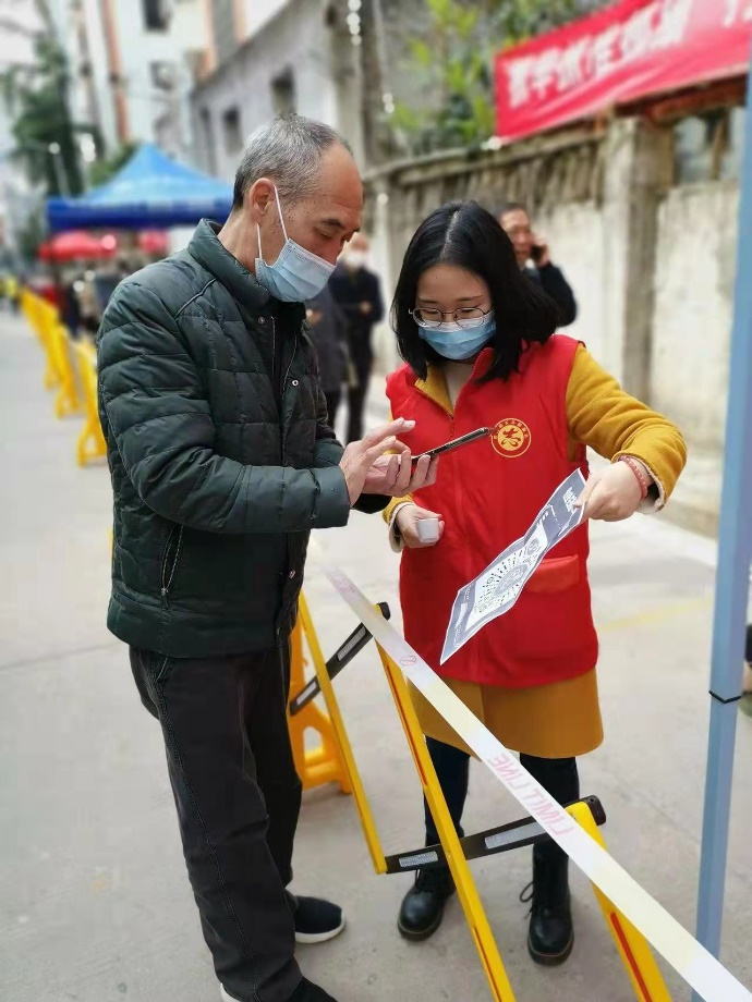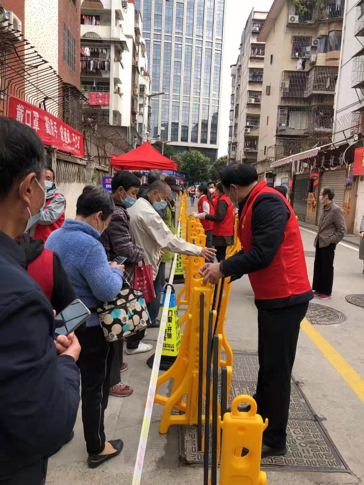 在活动现场,党员志愿者们充分发挥党员先锋模范作用,在严格落实个人防护措施的同时,与思儿亭社区的工作人员一起布置现场,帮助登记采集信息,查看健康码、测量体温、解答咨询和进行防疫政策宣传,做好核酸检测现场秩序的维持工作,有效缓解了思儿亭社区疫情防控力量紧缺的问题。