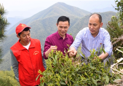艾茂才 (右)在查看野生茶,拓展经展新路