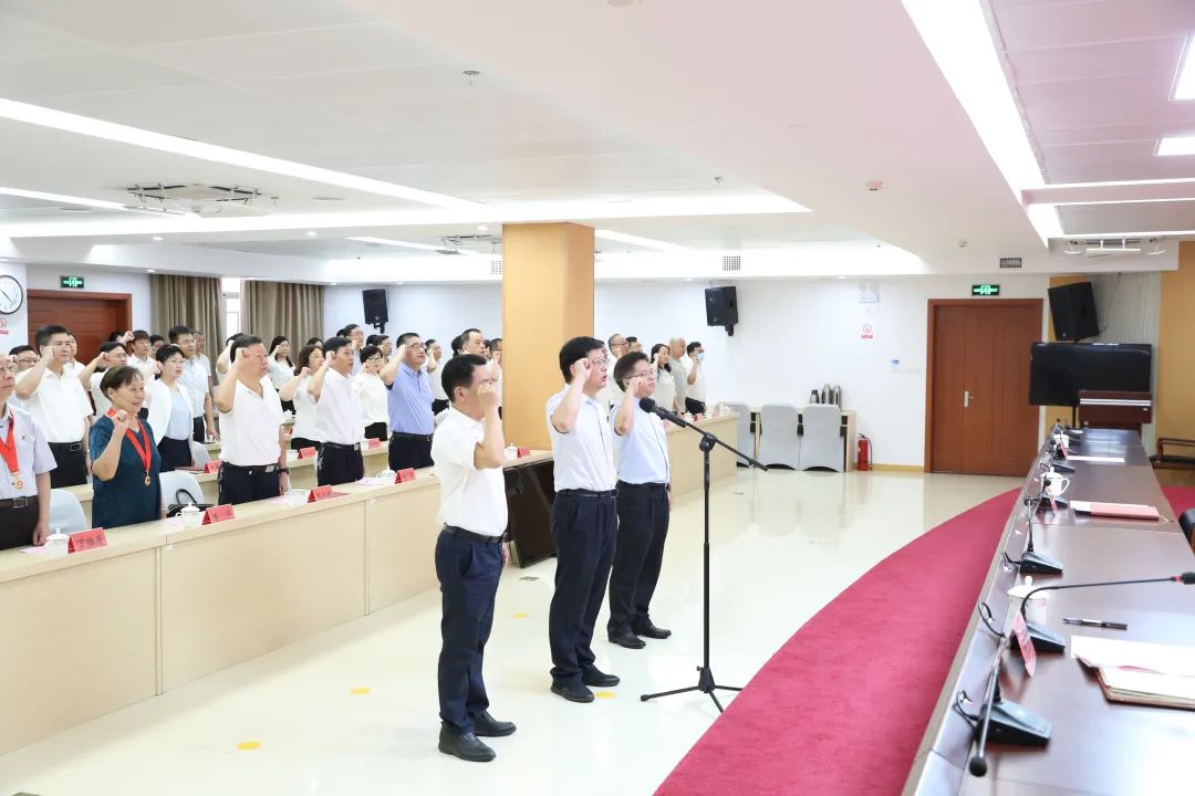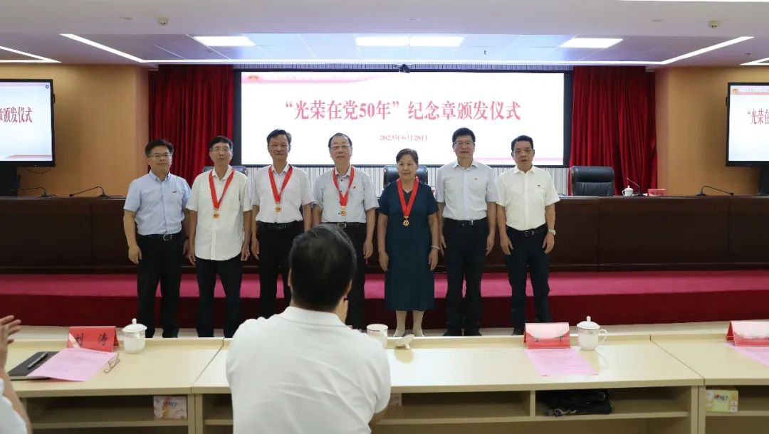 会上,张永生组长宣读了省直机关工委、厅党组关于优秀共产党员、优秀党务工作者和先进基层党组织的表彰决定,三位厅领导为获得表彰的先进集体、先进个人颁发了奖牌证书,为“光荣在党50年”党员代表颁发了纪念章;全体党员重温入党誓词。