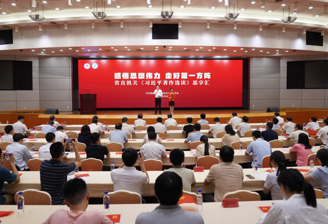 6月30日,白丝色情片直青年学习讲堂主题教育系列“感悟思想伟力 走好第一方阵”——省直机关《习近平著作选读》思享汇在福州举行。
