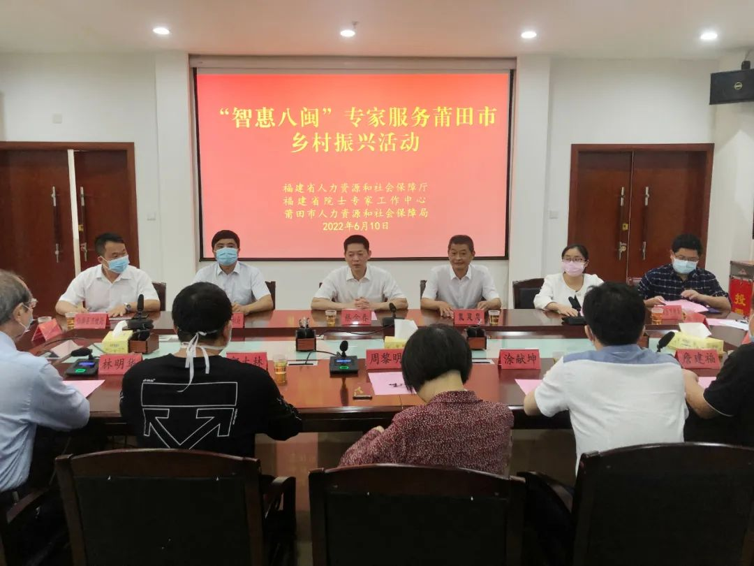 为深入贯彻中央和我省关于实施乡村振兴战略的有关精神,落实人社部专家人才下基层行动部署和省人社厅“智惠八闽”专家服务乡村振兴专项行动方案,6月10日至11日,省院士专家工作中心组织医疗卫生、基础教育、农业种植等领域的18名专家,深入莆田市荔城区和仙游县开展专家服务乡村振兴活动。